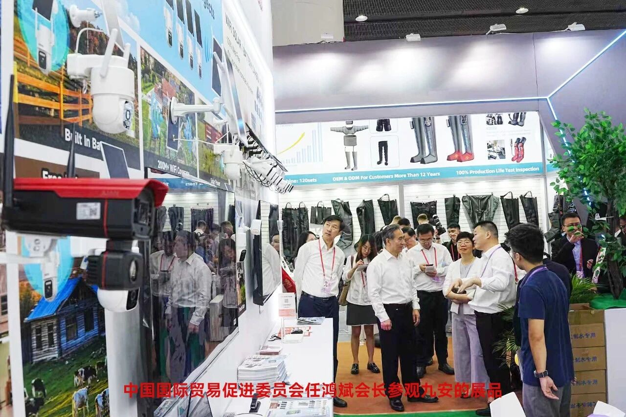 第138届广交会首日,现任第二十届中央纪委委员,中国国际贸易促进委员会会长、党组书记,中国国际商会会长,国际商会中国国家委员会主席任鸿斌先生莅临九安智能展位考察。